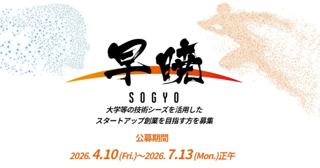 【募集中】大学等の技術シーズを活用したスタートアップ創業を目指す方対象「早暁プログラム」の募集が始まりました。