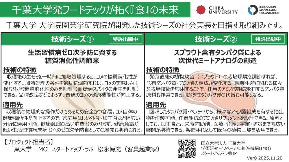 千葉大学IMOスタートアップ・ラボでは、今後も研究成果を広く発信し、社会実装を加速するため、積極的にイベント出展を続けてまいります。